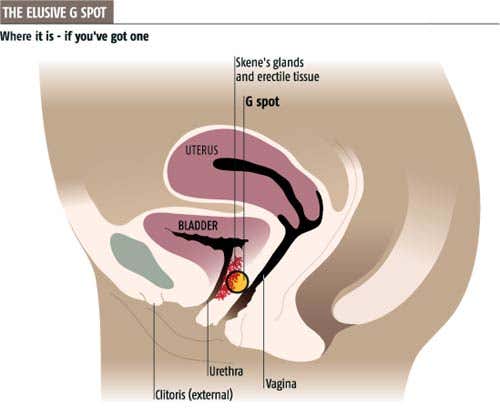 El Punto G es más formalmente conocido como el Punto de Gräfenberg, basado en el nombre del ginecólogo, Ernst Gräfenberg, quien fue el primero en publicar un articulo en la International Journal of Sexology sobre el tema en 1950 titulado “El papel de la uretra en el orgasmo femenino”. El Punto G es un terreno en forma de habas, esponjoso de la zona que rodea la uretra, contiene grupos de terminaciones nerviosas comparativas a la próstata masculina. Se encuentra a 7-8 centímetros dentro de la vagina en la parte frontal (anterior) de la pared. El Punto G varía la ubicación de las mujeres en algún lugar entre las 11 horas y la 1 en punto, cuando, vista desde el frente. Cuando es estimulado, el Punto G puede producir un orgasmo intenso y en algunas mujeres puede provocar una gruesa eyaculación. La estimulación del Punto G, que tiene lugar dentro de la vagina, no debe confundirse con la estimulación del clítoris, que tiene lugar en el exterior de la vagina. El Punto G, en la que es difícil de alcanzar lugar a menudo requiere la presión directa para generar un orgasmo, por lo general de los dedos, aunque en algunas posiciones puede ser estimulada por el pene.